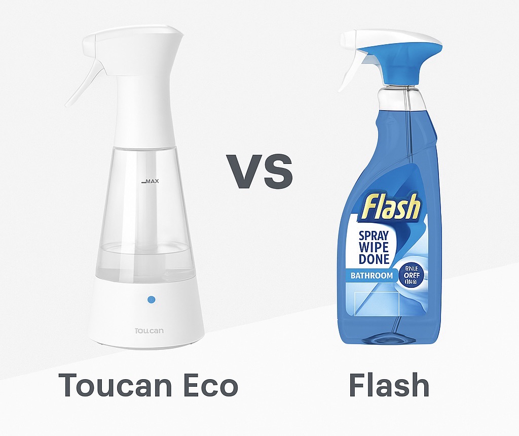 In this showdown between Flash Wipe Done and the Toucan Eco system, we’re flipping the cleaning world on its head. Why keep buying plastic bottles when you could just make your own disinfectant at home—with salt, water, and a little electricity? It’s a clash of old vs new, convenience vs circularity, and conventional vs genuinely clever. So… does thinking outside the bottle actually work?